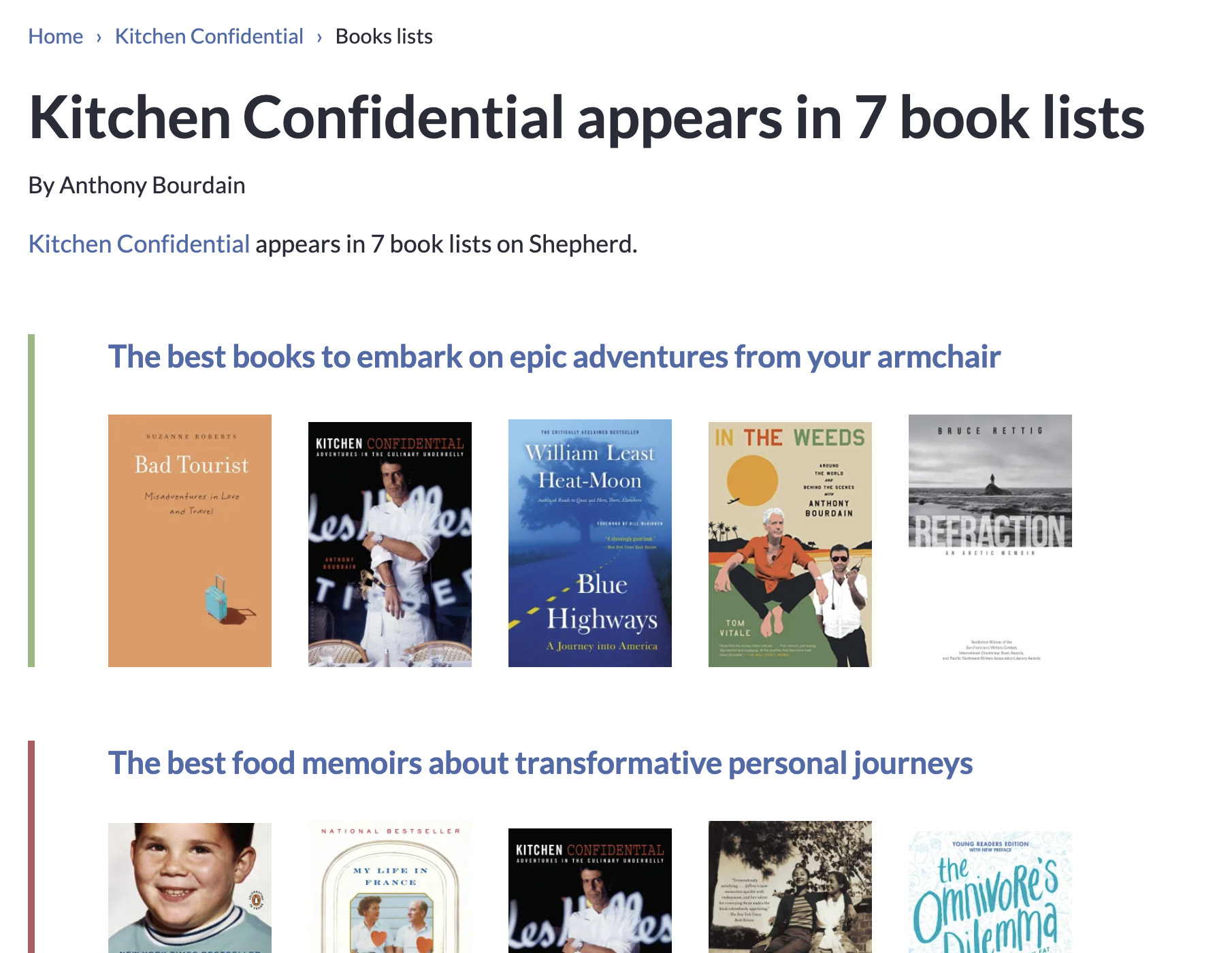 We added individual book pages to explore each book and why you should read it (try Kitchen Confidential or Dune). We have a lot more planned for this section in the coming years.