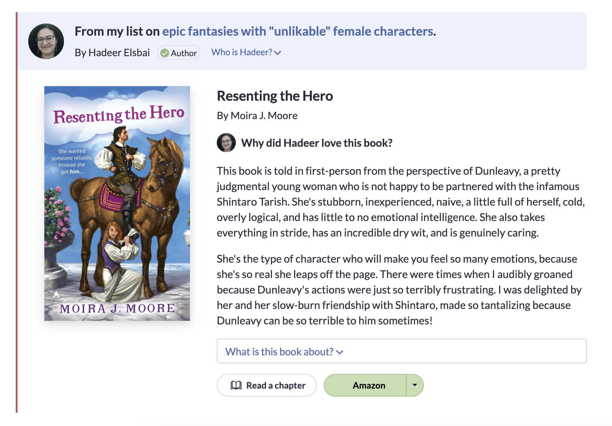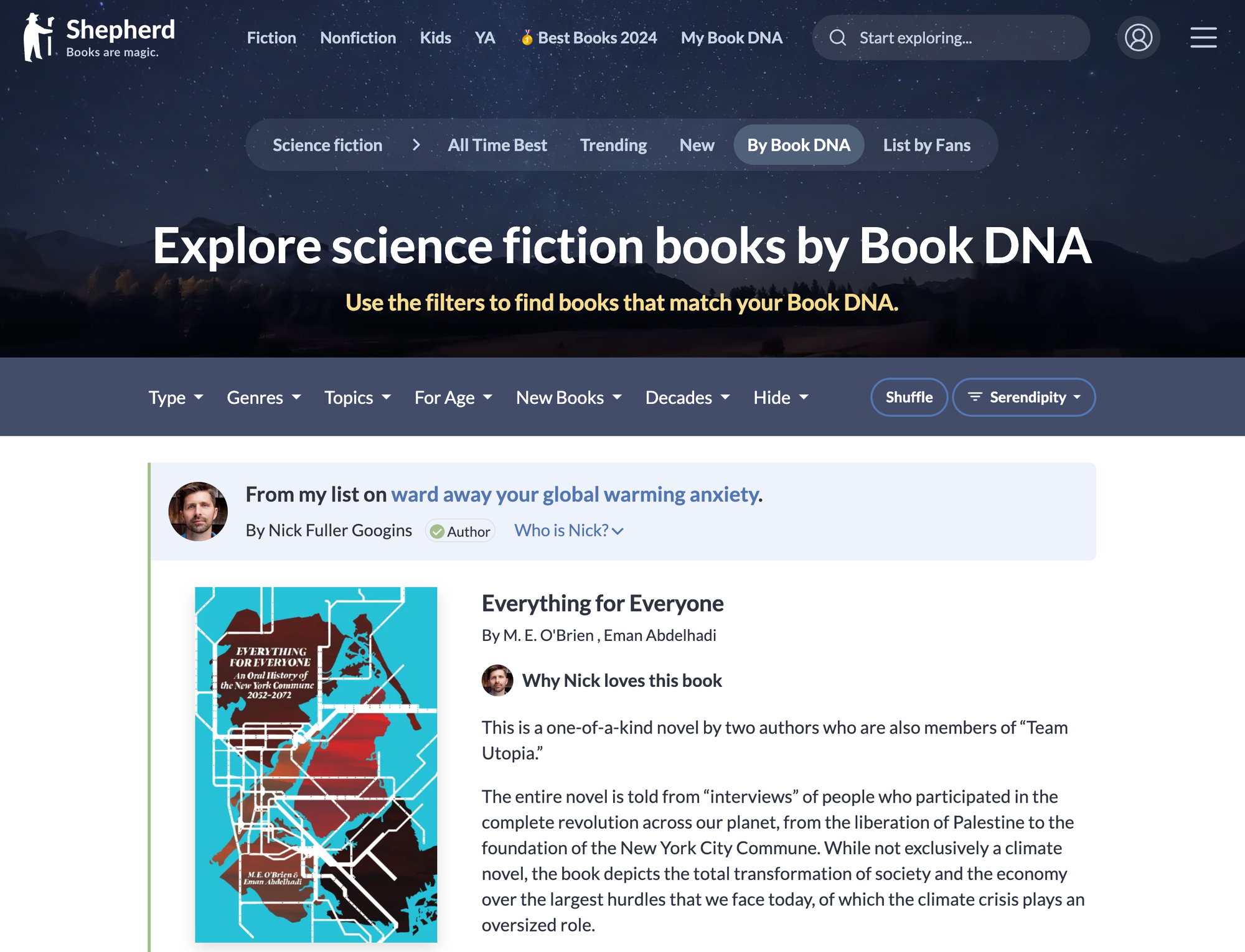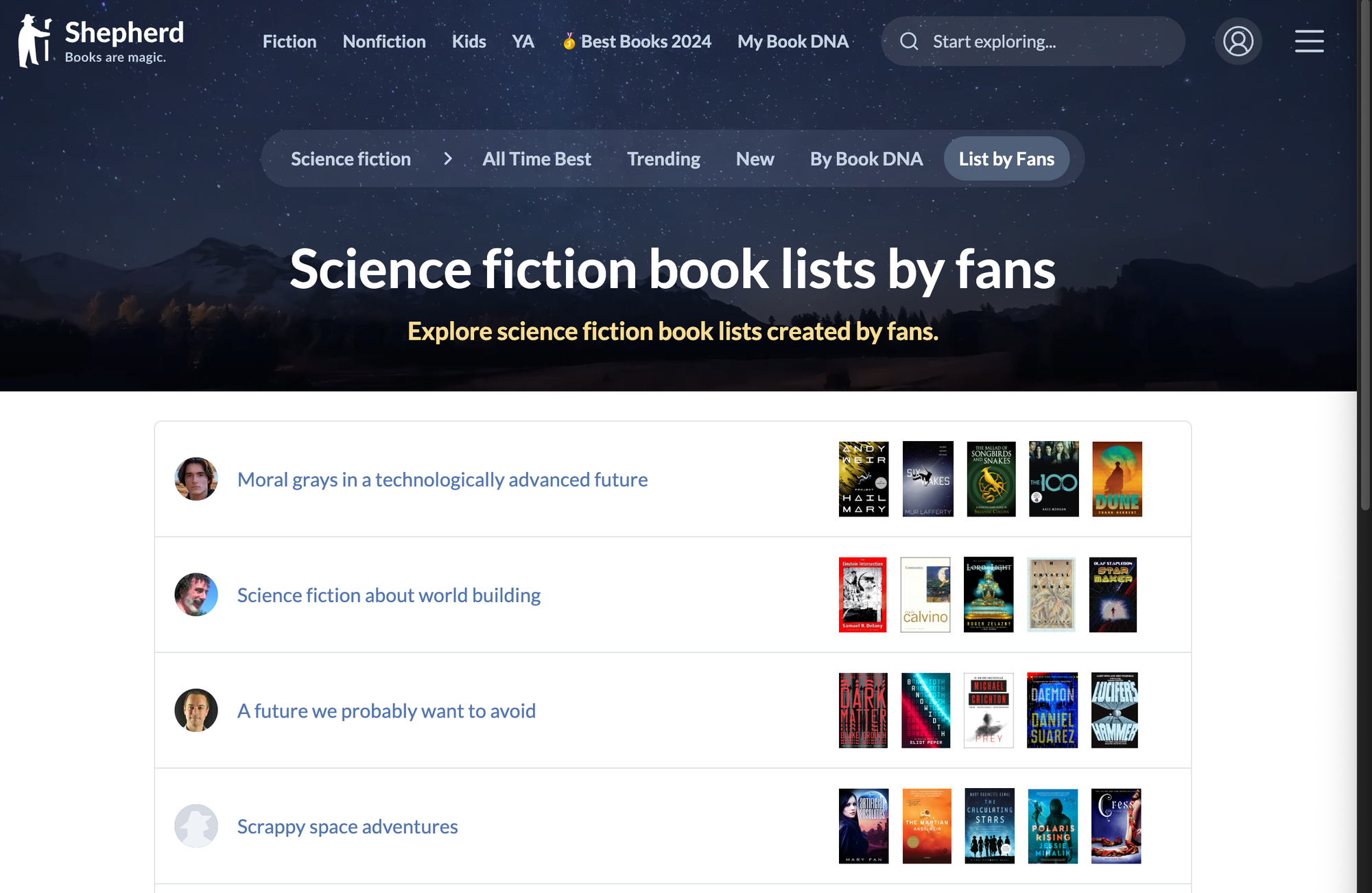 This will show off book recommendation lists that authors and experts have created that match that bookshelf. For example, Dave's list of the best science fiction books with an everyman hero under the sci-fi bookshelf.