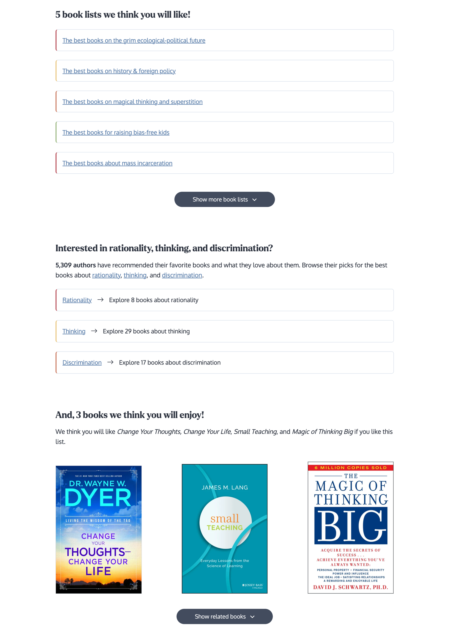 This section shows the most recommended books within that bookshelf. Plus, you can dive into the most recommended books by year, decade, age group, and more (depending on the book grouping).